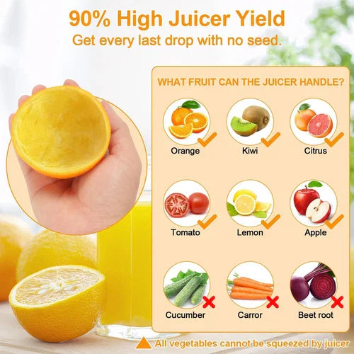 Free hands: Compared with the traditional manual orange squeezer, the new citrus juicer no longer needs to be pressed by hand. Control the start with just one button, freeing your hands and requiring less effort.