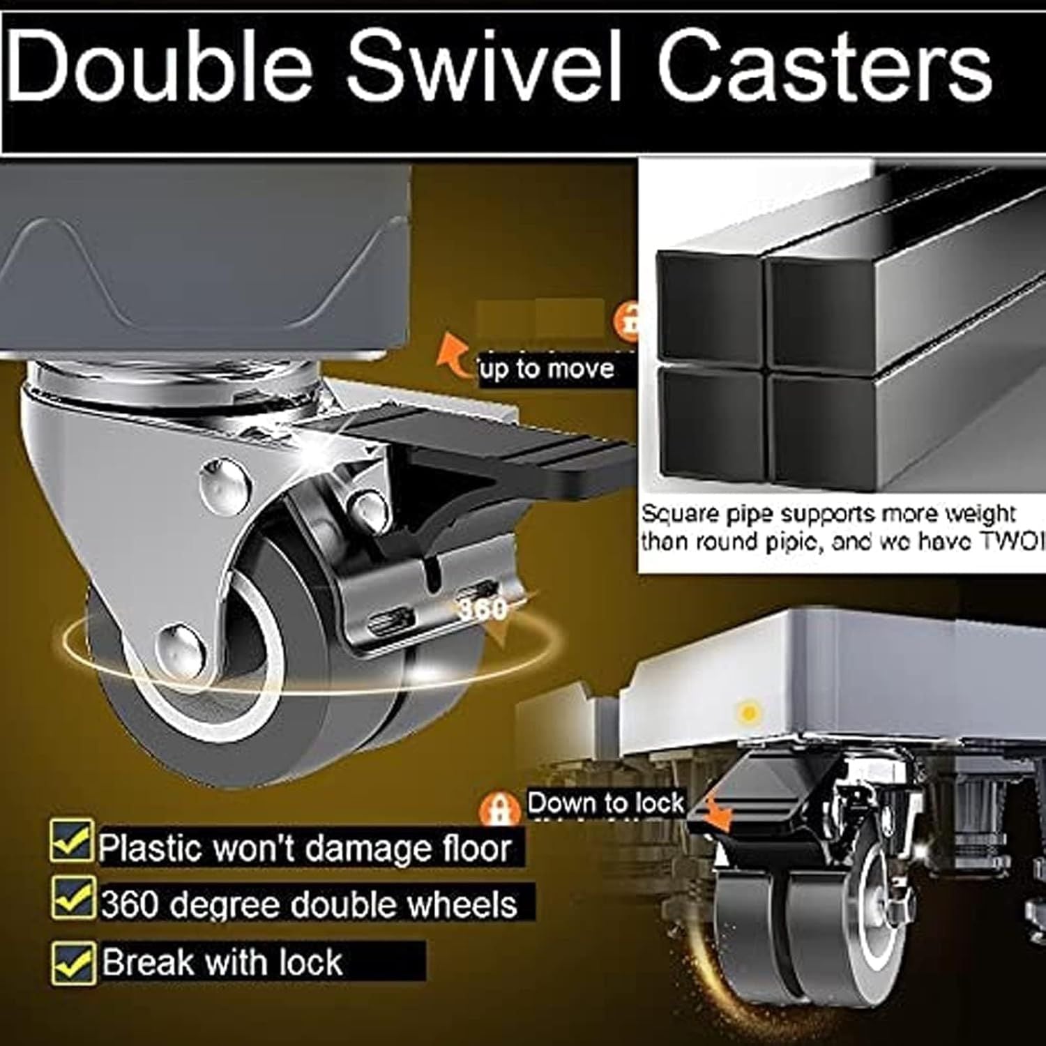 ✅ Easy to Install & Move – Simple assembly with secure locking buckles. The 360° rotating swivel wheels (with locks) make moving and positioning your appliance effortless.
